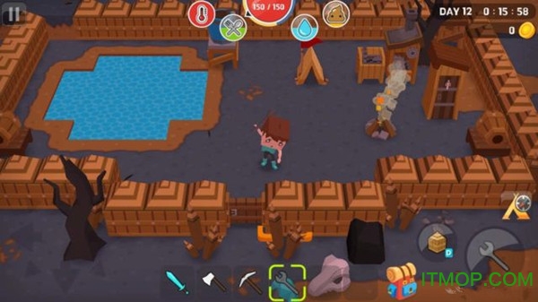 生存世界,通过收集和狩猎,可以创建工具和建筑物。