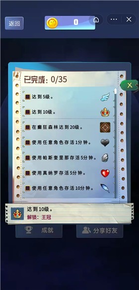 1.独特升级,获得独特技能,不断挑战更多敌人,完成挑战。