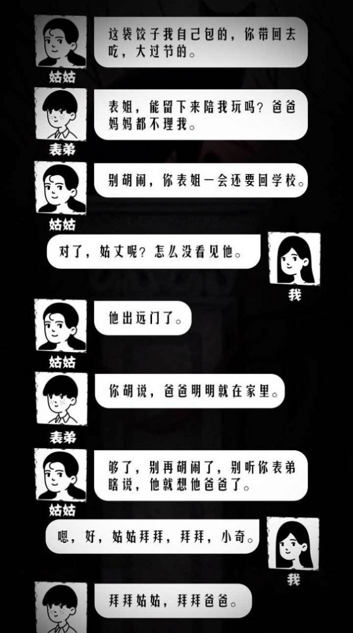 细思极恐鬼事录手游作为一款文字对话解谜的手游,用自己的想法去完成其中的解谜,解锁更多的冒险挑战,探索这些故事中的真相,烧脑的对话挑战,众多的线索从只言片语中来了解到,文字的界面非常的简约,通过聊天来完成更多的解谜,众多的关卡异闻等待你来尝试。