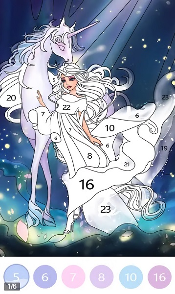 在图案选择方面,游戏收录了迪士尼风格公主、独角兽、精灵等上百种童话角色,以及四季变换的魔法森林、海底王国等场景。每个季度还会推出限定主题图案,比如圣诞特别版、夏日海滩系列等。颜色调色板不仅包含256种基础色,还创新性地加入了金属色、荧光色等特殊效果颜料,玩家可以自由调配出任何想要的颜色。填色操作支持多点触控和压感识别,配合智能防溢出技术,即使是复杂图案的细节部分也能精准上色。