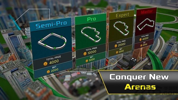 - 6个风格迥异的专业赛车竞技场,全方位考验你的驾驶技术