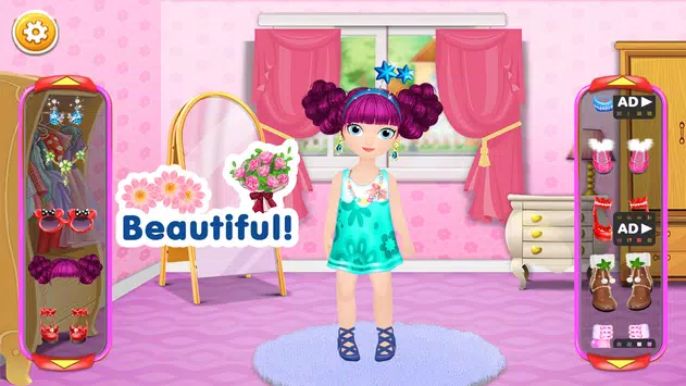 在新房间里,戴安娜没有小女孩需要的东西,这让她感到非常难过。幸运的是,爸爸和罗曼及时带来了戴安娜最爱的裙子、闪亮的珠宝和精致的化妆品。你可以拥有一个装满梦幻服饰的衣橱,里面都是少女心爆棚的甜美单品!游戏提供了海量搭配选择,从发饰到鞋子都能自由混搭,创造出无数种可能。每个细节都能体现你的独特品味,让戴安娜焕发迷人光彩。