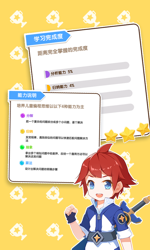 每节课程都采用10分钟左右的动画教学模式,通过生动有趣的故事情节和互动环节,将编程知识融入其中。这种创新的教学方式能够有效保持孩子的注意力,提高学习效率,让编程学习变得轻松愉快。