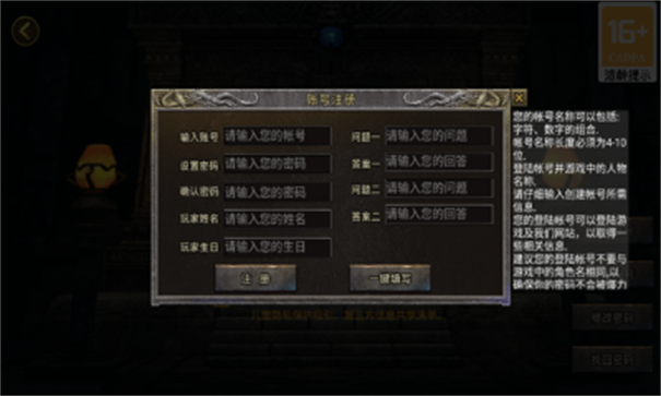 游戏保留了传奇系列最经典的三职业设定,战士、法师和道士各具特色,玩家可以根据自己的喜好自由选择。每个职业都拥有独特的技能体系和成长路线,为玩家带来多样化的战斗体验。游戏提供了丰富的打金途径,无论是野外打怪、挑战精英和BOSS,还是参与各种限时活动,都能获得丰厚的收益。特别值得一提的是游戏的铭文系统,玩家可以通过铭文强化武器属性,大幅提升战斗力。此外,组队系统让玩家可以召集兄弟一起挑战高难度副本和世界BOSS,享受团队协作的乐趣。