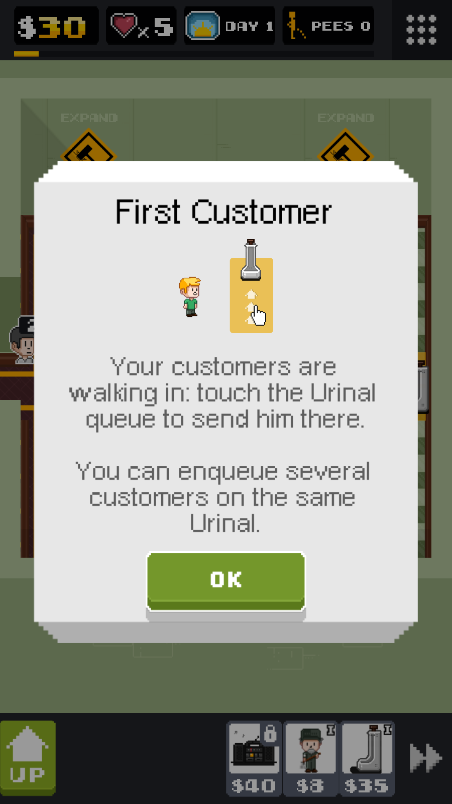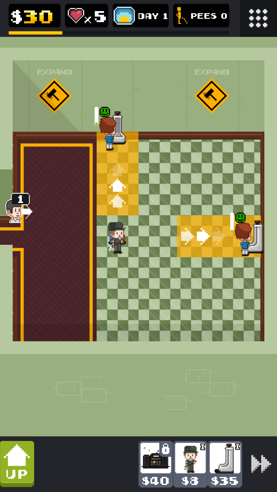 游戏采用经典的像素画风,色彩明亮清爽,各种设施和人物造型都充满趣味性。精心设计的数十个关卡各具特色,随着游戏进程会解锁更多高级设备和经营挑战。策略性玩法是游戏的核心魅力,你需要权衡资金分配,决定是优先扩建基础设施还是提升服务质量。操作方式简单爽快,通过拖拽、点击等直观操作就能完成各项管理指令。游戏还融入了现实中的"小便池礼仪"等细节设定,大大增强了模拟经营的真实感。