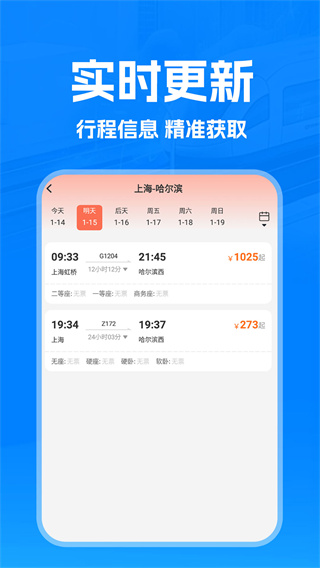 提供不同的车票查询的功能,如:老人票、学生票、以及儿童票等,不同的票的价格都不一样和不一样的福利。针对特殊人群,APP还提供详细的购票政策说明,帮助用户了解各类优惠票的使用条件和注意事项。此外,系统会自动计算最优票价组合,为用户节省出行成本。