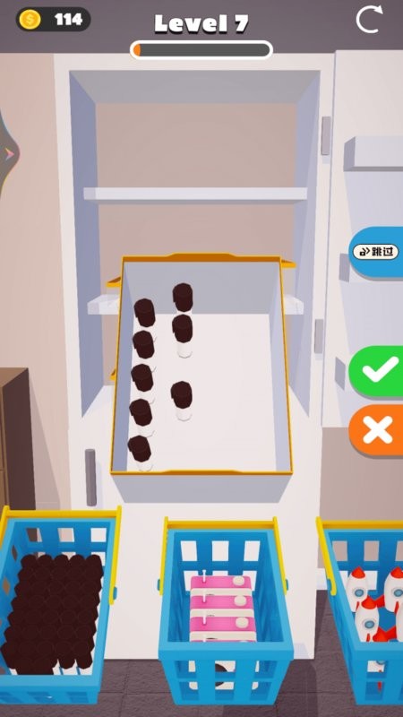 把冰箱填满小游戏是一款轻松有趣的休闲益智游戏,玩家需要在有限的空间内完成整理收纳的挑战。游戏采用简洁明快的画面风格,玩法简单却充满乐趣。每个关卡都会提供两个蓝色框子,里面装满了各种需要收纳的物品。玩家需要开动脑筋,将这些物品合理分类并整齐地摆放到冰箱中,确保不留任何剩余。随着关卡推进,物品数量和种类会逐渐增加,难度也会相应提升。这款游戏不仅能锻炼玩家的空间规划能力,还能带来满满的成就感,特别适合想要放松心情或打发时间的玩家体验。