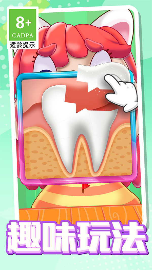 独特的绘画和造型风格,这种绘画和造型风格让玩家在玩的时候有不一样的体验,完成更多的口腔清洁吧。游戏采用卡通渲染技术,在保持专业感的同时又不失趣味性。色彩明亮的诊所环境和可爱的角色设计,营造出轻松愉快的游戏氛围。特殊的光影效果让治疗过程更具视觉冲击力。