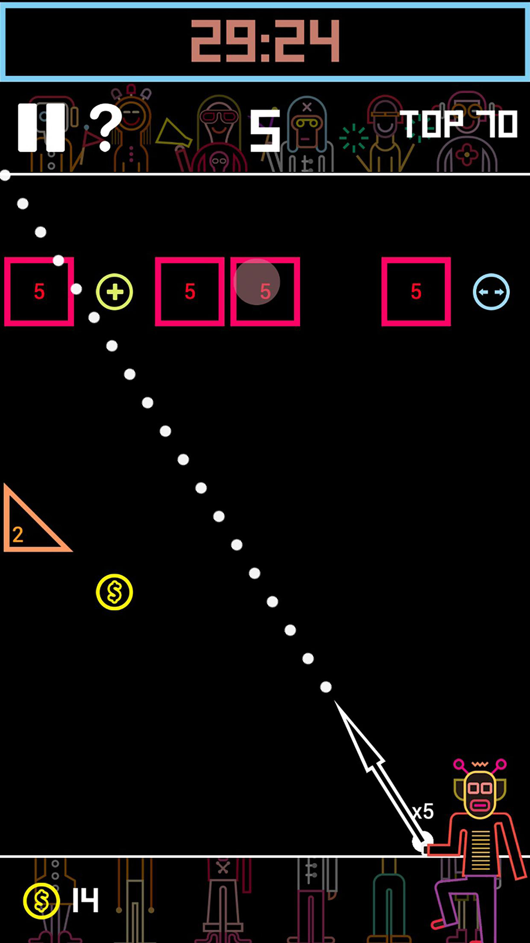 触摸、按住并拖动来让弹球跳跃到砖块上,操作简单但充满技巧性。