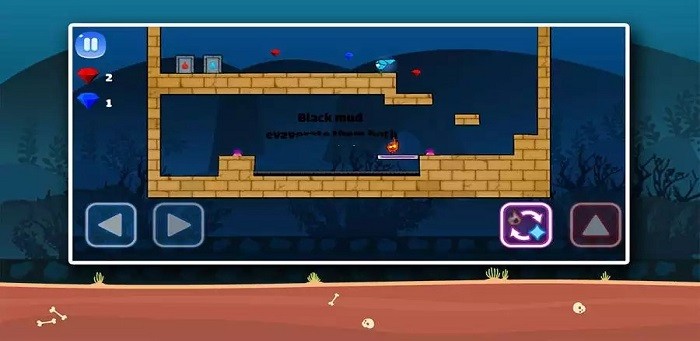 角色属性与场景元素严格对应,火男只能收集红色宝石通过火门,水女则对应蓝色元素,这种设定要求玩家必须合理分配任务才能高效通关。
