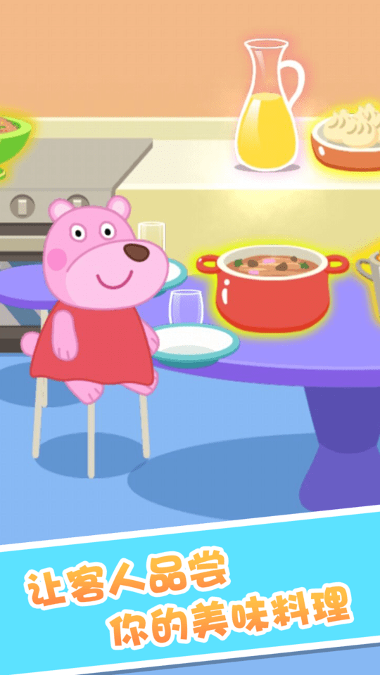 大熊比尔之动物餐厅是一款专为幼儿设计的厨房模拟启蒙游戏,采用生动可爱的卡通画风,让孩子在轻松愉快的氛围中探索烹饪的乐趣。游戏中包含数十种常见食材和厨具,孩子们可以自由选择角色扮演厨师、服务员或店长,通过动手制作各种美食来提升认知能力和动手能力。丰富的互动元素和色彩鲜明的画面设计,能够有效激发孩子的学习兴趣,帮助他们在游戏中自然掌握生活常识和基础技能。