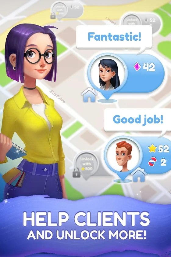 游戏拥有丰富多样的特色内容:每位客户都有独特的个性和需求,超过100种风格各异的家居装饰品供您选择,温馨有趣的故事剧情贯穿始终,将家庭设计模拟与三消挑战完美结合。随着游戏进程,您将不断提升设计技能,解锁更多专业奖励。