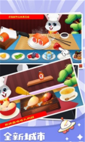 游戏设置了多个特色城市场景,每个城市都有独特的美食文化和顾客群体。从海滨小镇的渔港餐厅到都市中心的时尚餐吧,不同的选址会带来完全不同的经营体验。