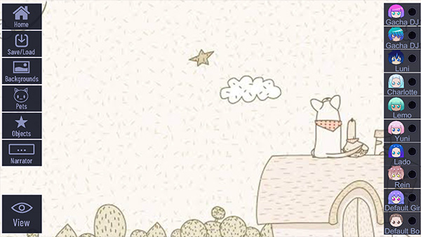 游戏场景支持同时添加多达10个角色进行互动,让创作更加丰富多彩。除了角色之外,你还可以将自己喜爱的宠物和各种物品添加到场景中。海量的背景和前景选择为你的创作提供了无限可能。通过自定义文本框功能,让角色之间展开生动对话,甚至连宠物也能参与互动。特别设计的旁白系统可以帮助你更好地讲述故事场景。游戏支持保存和加载多达15个不同的场景设计,方便随时继续创作。多种面部预设模板让你可以快速改变角色的表情状态。