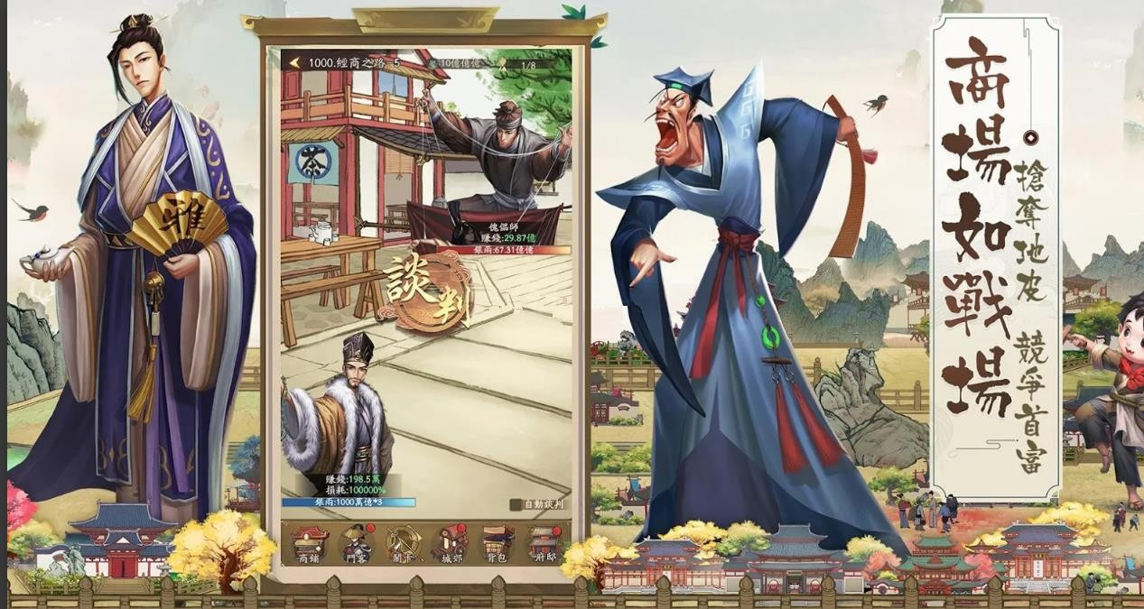 除了商业经营,游戏还融入了丰富的生活元素。你可以在游历过程中邂逅各色美人,通过追求和迎娶来丰富自己的家庭生活。每位美人都有独特的性格和故事,她们与门客之间的缘分还能提升门客的能力。同时,你还需要经营好自己的家庭,处理好妻妾关系,培养子女成才,实现真正的"家和万事兴"。