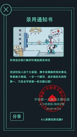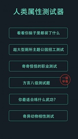 作为一款文字互动模拟手游,人类属性测试器的操作简单易懂,无需复杂的操作技巧即可轻松上手,适合各年龄段的玩家。界面设计采用极简风格,重要选项都有明显标识,确保操作流畅无障碍。