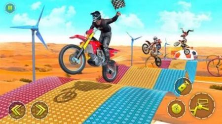 游戏提供了丰富多样的玩法模式,包括计时赛、特技挑战、生存模式等。玩家可以通过完成各种高难度动作来获得分数加成,如后轮平衡、空中翻转等。游戏采用直观的触控操作,左侧控制方向,右侧控制加速和特技动作,操作简单但极具深度。随着游戏进程的推进,玩家可以解锁更多性能优异的自行车和个性化改装部件,打造属于自己的专属座驾。游戏还设置了全球排行榜,让玩家能够与全世界的玩家一较高下。