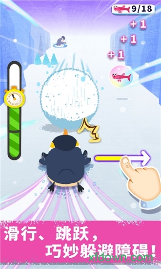 帝企鹅的饭后娱乐——滑雪开始啦!游戏设计了动态障碍系统,宝宝需要帮助企鹅越过石头、躲避海豹、绕开雪球。随着关卡提升,难度会逐渐增加,考验玩家的反应速度和手眼协调能力。成功吃到小鱼后,还能体验加速滑行的快感!