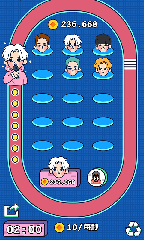 独特的舞台系统让游戏更具策略性,玩家需要合理安排小鲜肉的上场顺序,最大化金币收益。