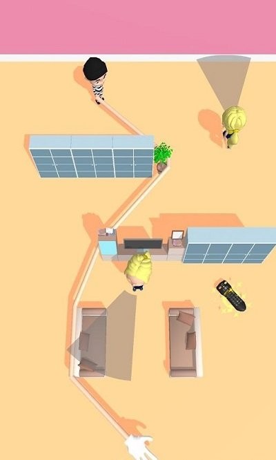 游戏场景设计注重细节,每个区域都有独特的巡逻路线和监控死角。玩家需要快速移动并利用环境掩护,避开警卫的视线。随着关卡推进,巡逻频率和监控密度会显著增加,考验玩家的观察力和反应速度。特别设计的"警觉度"系统会让警卫对异常情况做出不同反应。