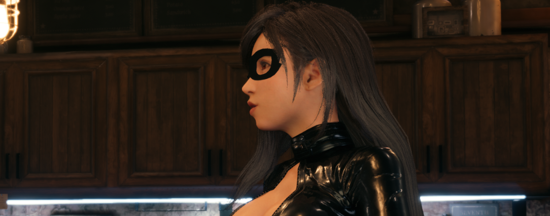 最终幻想7重制版蒂法清纯素颜紧身黑衣魅力特工mod,这是一款由玩家“MonkeyMan”制作的mod,使用后就可以让蒂法以素颜的状态穿上一件黑色的紧身衣,化身神秘特工,充满了魅力,仿佛电影里的猫女一样,非常有吸引力,不过本mod是不戴面罩的版本,如果玩家喜欢图中戴着面罩的,可以点击链接下载,喜欢最终幻想7重制版的玩家千万不要错过下载哦。