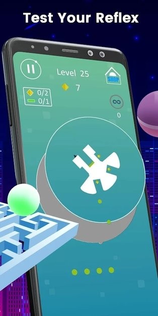 通过击中每一个目标来收集宝石并通过将球带入迷宫来清除每个精心设计的阶段来测试您的反射准确性!