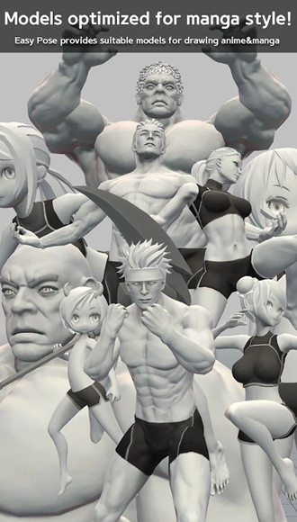 针对漫画创作者的特殊需求,软件特别优化了人体比例系统。不同于传统虚拟人体软件的8头身标准,EasyPoser提供了更符合动漫审美的6头身模型,并支持多种体型切换。即将推出的3头身Q版模型将进一步完善创作选择。