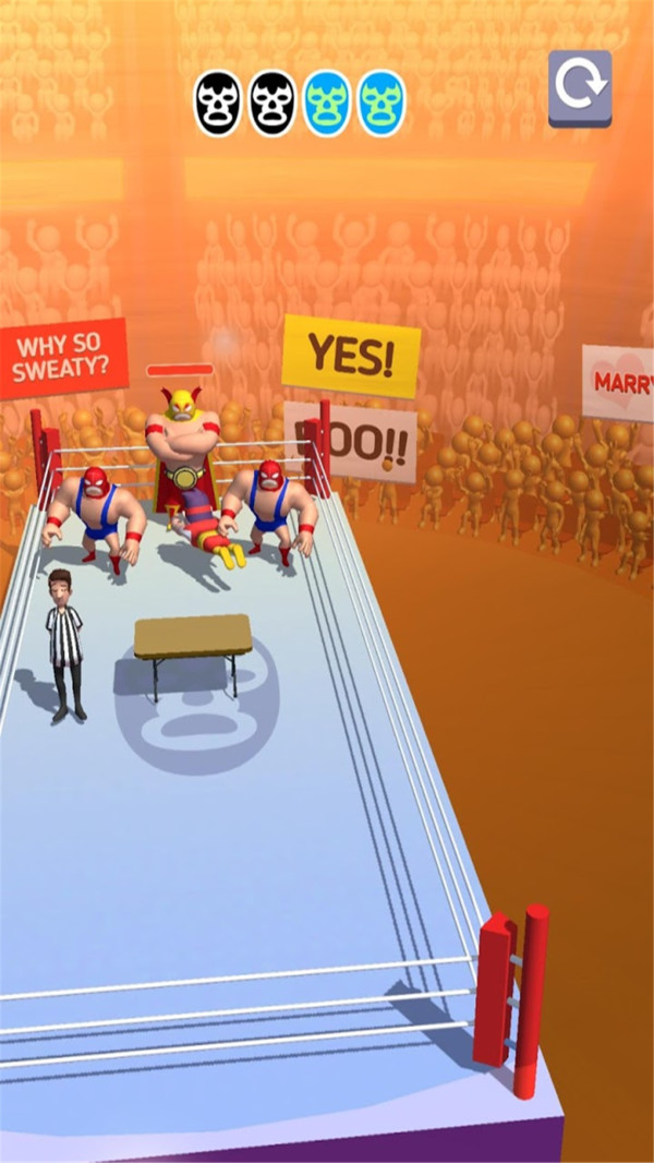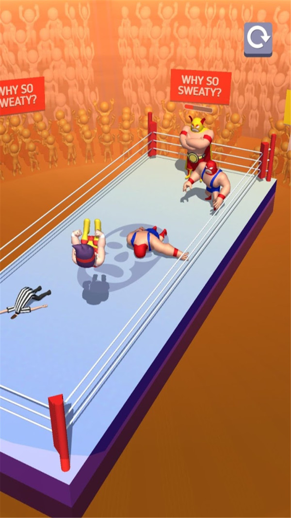 《摔跤单挑》是一款令人热血沸腾的动作摔跤格斗游戏,它将带给你前所未有的爽快战斗体验。在这款游戏中,你将化身为一名职业摔跤手,踏上充满挑战的竞技场,通过参加各种高强度的比赛来证明自己的实力。游戏精心设计了大量夸张而魔性的摔跤动作,从经典的抱摔、飞扑到独创的必杀技,每个动作都充满力量感与视觉冲击力。你需要深入掌握每个角色的独特摔跤技能,在激烈的对抗中精准把握时机,敏锐地发现对手的弱点并给予致命一击。只有真正精通这些技巧的玩家,才能最终登上"摔跤单挑之王"的宝座!