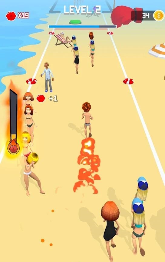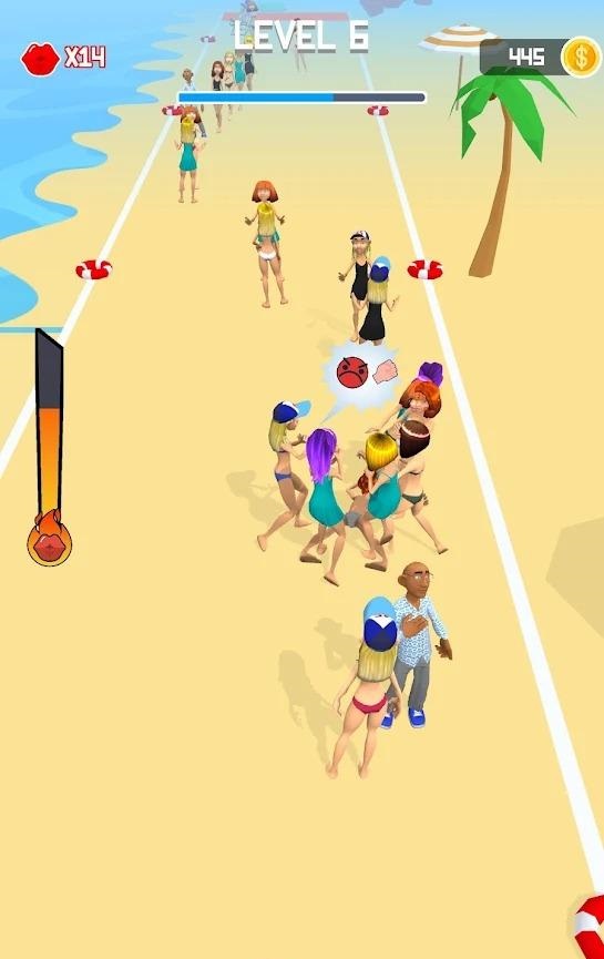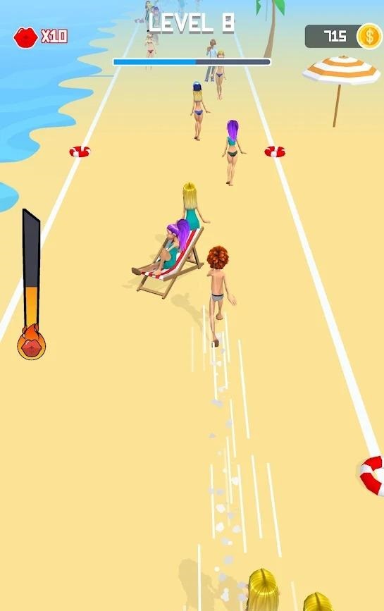 亲吻和逃跑手游非常魔性欢乐好玩的无厘头休闲闯关手游,很多的美女,在沙滩上,一位色胆包天的年轻小伙,看到美女就想要上去亲吻,这里用户们需要帮助美女们,逃避小伙的亲吻,趣味十足的手游尝试,绝对不能让渣男给亲到,不断提高手速,灵活操作,避开沿途的各种障碍物。