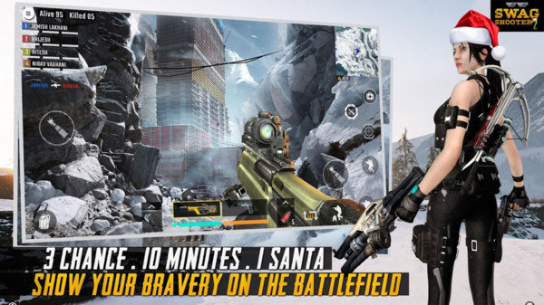 独特的圣诞主题战场:游戏将传统射击玩法与节日元素完美融合,白雪覆盖的城镇、装饰着彩灯的街道,营造出既温馨又紧张的特殊氛围。