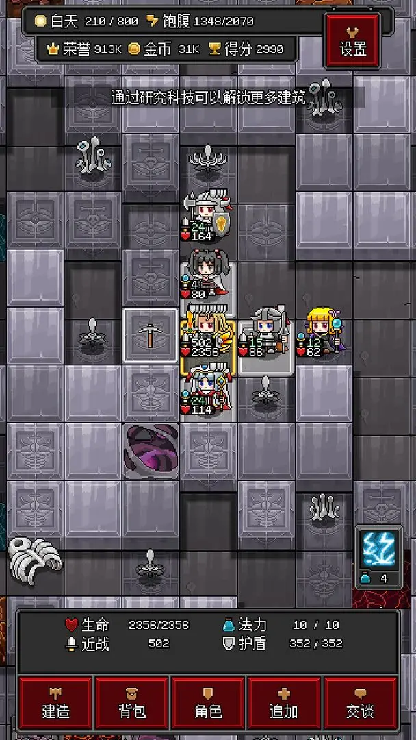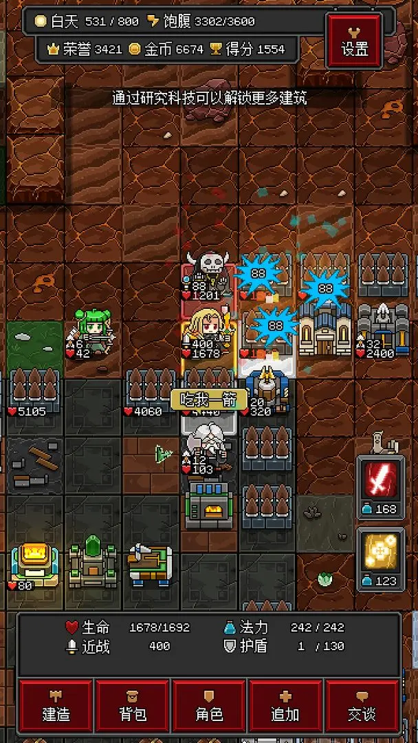 开局选择职业时,建议新手优先考虑法师或弓箭手,这两个远程职业在前期生存能力较强。第一天不要急于建造基地,应该全力收集基础资源。夜晚怪物出现时可以通过放置路障来阻挡,继续采集工作。第二天开始规划基地建设,选址要考虑防御便利性和资源采集效率的平衡。优先建造石屋并招募村民,这些NPC经过强化后能提供强大的防御支持。