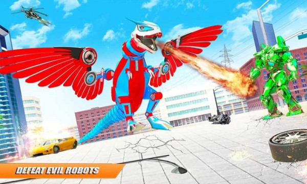 在这座被邪恶势力笼罩的未来都市中,你将化身为正义的守护者——飞龙机器人。这台来自未来的终极战斗机器拥有三种截然不同的战斗形态:高速移动的汽车形态适合快速穿越战场;全副武装的机器人形态配备多种重型武器;而最具威慑力的飞龙形态则能释放毁灭性的火焰吐息和利爪攻击。每种形态都经过精心设计,变形过程流畅自然,带给玩家极致的视觉享受。