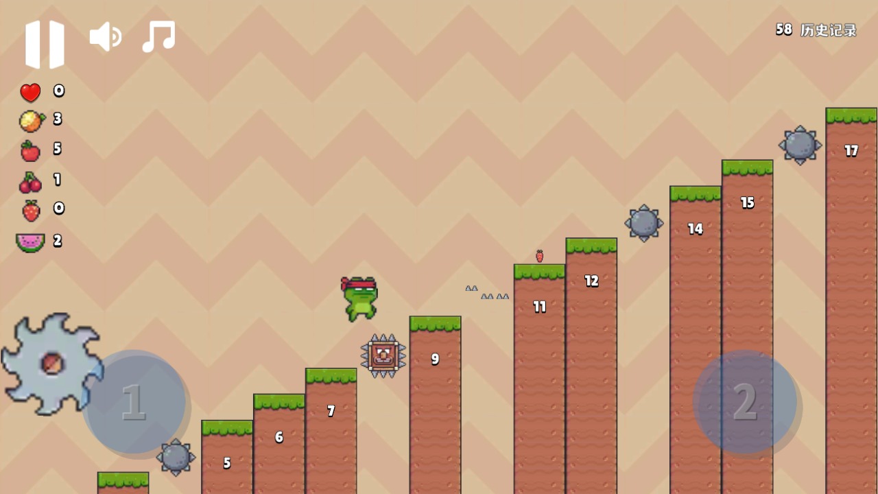 新手玩家建议先熟悉基础操作模式,从简单关卡开始练习节奏把控。遇到连续障碍时,保持匀速跳跃比盲目加速更有效。收集足够水果后优先解锁二段跳技能,这将大幅提升通关效率。高手玩家可以尝试"无伤通关"挑战,利用场景中的机关消灭敌人获取额外分数。游戏后期会出现镜像关卡,左右操作会反转,这时更需要保持冷静。