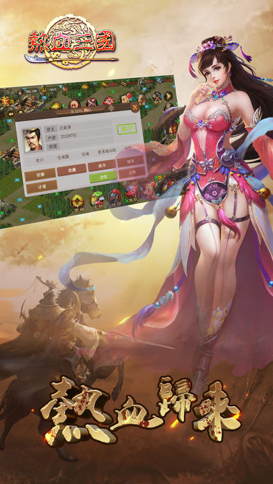 场景和人物刻画逼真,完美再现三国乱世古战场,3D框架渲染,激动人心的背景音效,给您超强的游戏沉浸感。游戏中的每一座城池、每一处战场都经过精心设计,从建筑风格到人物服饰都严格遵循历史记载,让玩家仿佛穿越回那个金戈铁马的年代。