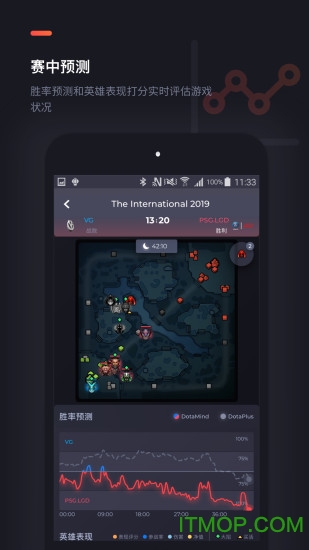 赛中预测:采用独特的胜率预测模型和英雄表现评分系统,实时评估比赛局势变化,帮助用户把握关键转折点。