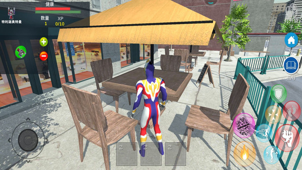 游戏采用开放世界架构,主城区域达16平方公里,包含地下基地、太空站等7类特色场景。战斗系统融合QTE连击与自由组合技,完美格挡可触发"光之反击"特殊动画。角色养成线包含38种可升级属性,通过击败怪兽获取的SP点数能强化奥特曼的飞行速度与光线威力。特别设计的亲子双人模式,让家长与孩子可以共同操作奥特曼施展合体光线技能。