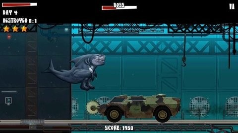 这是一款极具创意的横版卡通冒险逃生游戏,玩家将操控一只经过基因改造的机械鲨鱼,在充满危险的世界中杀出一条血路。游戏场景丰富多变,从深海到陆地,从城市到荒野,每个场景都设计精巧。你将面对各式各样的敌人,包括装甲车、军车、喷气背包士兵、坦克部队、武装直升机、四轮摩托车队、怪物卡车等现代化武装力量,甚至还要与喷气式飞机和巨大的龙形怪物周旋。在这场生死逃亡中,你是选择勇敢地突破重围,还是甘愿被困在标本容器中等待下一次DNA实验?