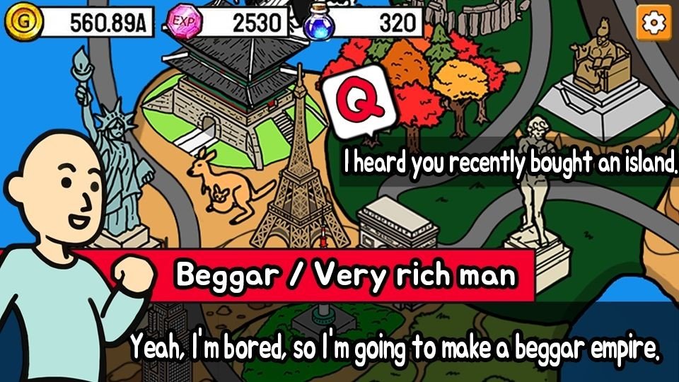 在游戏中,玩家需要充分发挥领导才能,通过周游世界的方式招募各类特色乞丐,逐步扩大自己的势力范围。游戏设置了全球多个著名城市的地标建筑,玩家可以通过购买这些地标来建立自己的乞丐帝国据点。随着游戏进程的推进,更多独特的地标和特殊乞丐角色会陆续解锁。游戏最具特色的环球乞讨系统让玩家可以体验不同国家的乞讨文化,每个地区都有独特的乞讨方式和挑战,为游戏增添了更多趣味性和可玩性。