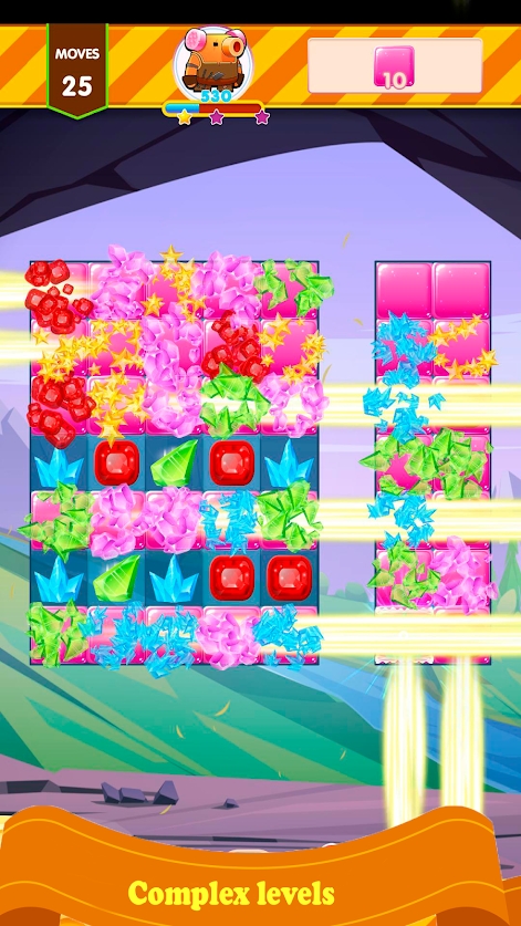 消除粉碎手游作为一款可以给到我们足够多消除冒险尝试的手游,在我们进入到该款中的时候可以获取到丰富的消除关卡,我们玩起来的时候也是十分轻松简单的,在游戏里玩家只需要把相同颜色的宝石进行消除掉就可以了,每次完成消除都是能够获取到积分的呢。