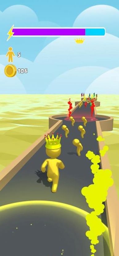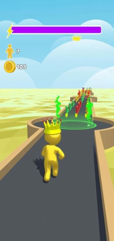 1、用户要根据角色的自身颜色收集同种颜色的队友,让体型不断增大。
