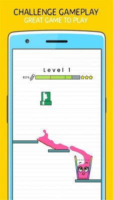 国王酒杯是一款充满创意与乐趣的休闲益智类游戏,它将物理规则与趣味玩法完美结合,为玩家带来轻松愉快的游戏体验。在游戏中,你将扮演一位聪明的调酒师,通过绘制各种线条来引导水流,最终将酒杯装满。游戏的核心玩法看似简单,却需要玩家充分发挥智慧与想象力,合理规划线条的走向,确保水流能够顺利进入杯中而不洒出。每一关的设计都独具匠心,既考验玩家的逻辑思维,又能带来意想不到的惊喜。