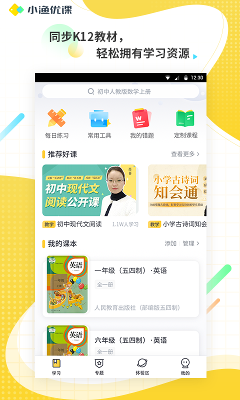 小渔优课app是一款专为K12阶段学生打造的智能学习平台,致力于为孩子们提供高效便捷的学习体验。通过这款应用,学生们可以随时随地进行知识巩固和能力提升,不再受时间和空间的限制。平台整合了每日练习、智能错题本、学科工具、定制课程等丰富功能模块,帮助孩子建立系统的学习闭环。无论是课前预习、课后复习还是假期提升,小渔优课都能提供个性化的学习方案。