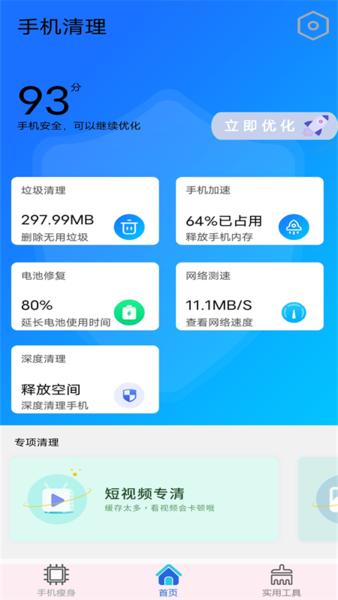 【手机加速】通过一键加速功能快速释放运行内存,关闭后台耗电应用,显著提升手机运行速度,让游戏和应用运行更加流畅。