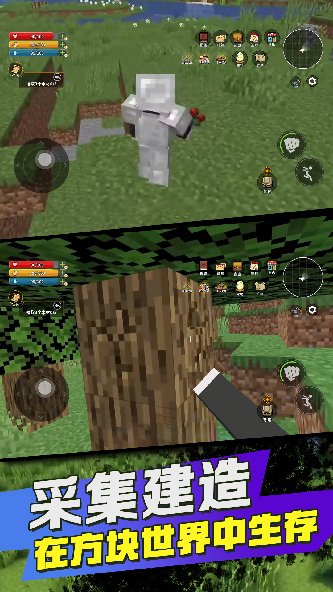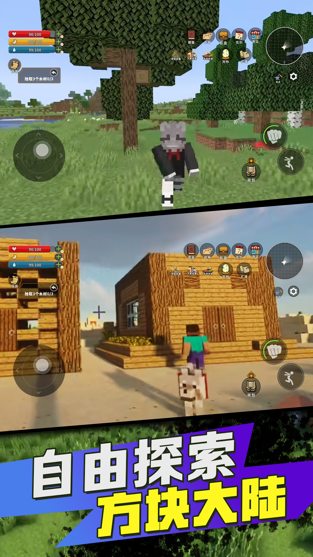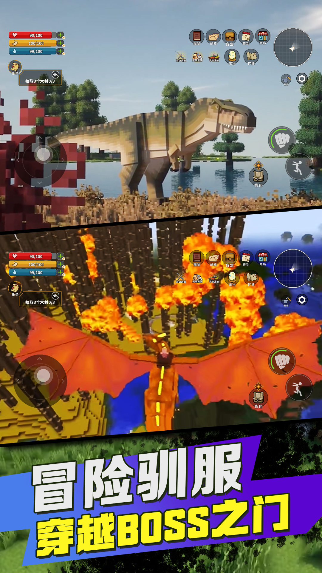 在这片神秘的方块大陆上,隐藏着无数等待发掘的宝藏和秘密。玩家需要准备好武器和装备,勇敢地踏上探险之旅。游戏中的野兽不仅可以成为你的敌人,更可以成为忠实的伙伴。通过驯服系统,你可以捕捉并驯化各种生物作为坐骑,骑着它们驰骋在这片神奇的土地上。无论是凶猛的狼群还是温顺的羊驼,都能成为你冒险路上的好帮手。