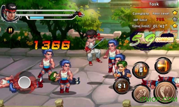 功夫之王2街头冲突无限金币版是一款热血沸腾的动作格斗游戏,将带你进入充满挑战的街头战场。在这款游戏中,玩家将化身功夫大师,运用各种华丽的连招和必杀技与邪恶势力展开激烈对决。游戏采用夸张的港漫风格设计,角色造型充满力量感,战斗特效炫目震撼。你可以自由组合上百种招式,体验拳拳到肉的打击快感。无论是单人闯关还是多人对战,都能让你感受到最纯粹的街机格斗乐趣。现在就来IT猫扑下载,开启你的功夫之王之路吧!