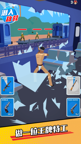 在《潜入敌营》这款充满刺激与策略的射击游戏中,玩家将化身一名精英特工,肩负着潜入敌方阵营并消灭所有敌人的重任。游戏采用独特的卡通画风,为紧张的战斗增添了一丝轻松氛围。玩家可以自由选择各种强力武器,从散弹枪到火箭筒应有尽有,同时需要巧妙利用地形进行掩护和突袭。无论是新手还是资深玩家,都能在这款游戏中找到属于自己的战斗节奏,体验特工行动的惊险与快感。