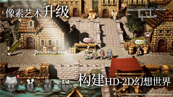 游戏延续了系列标志性的HD-2D像素艺术风格,通过将精致的3DCG效果与复古像素画面完美融合,创造出一个既怀旧又充满现代感的梦幻世界。每一帧画面都经过精心打磨,从角色动作到场景细节都展现出极高的制作水准,为玩家带来视觉上的极致享受。