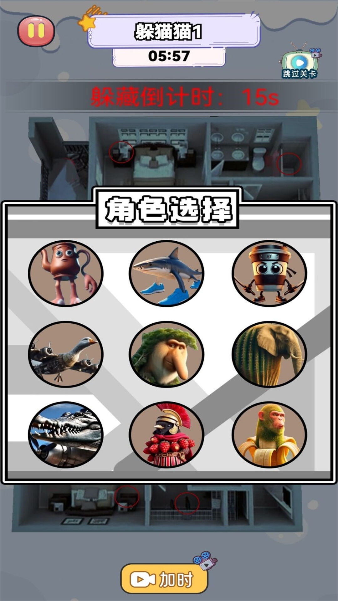 请选择你的躲藏点!这是一款充满刺激与策略的躲藏游戏,玩家需要在复杂多变的环境中寻找最佳藏身之处,同时躲避对手的追捕。游戏场景丰富多样,从废弃工厂到繁华都市,每个地图都隐藏着独特的秘密和挑战。无论是单人模式还是多人联机,都能让你体验到紧张刺激的追逐战。通过巧妙的策略和敏捷的反应,成为最后的幸存者!