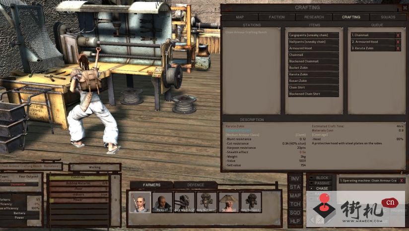 角色定制:编辑你的角色,建立他们的优势,并观察他们的忍耐和成长。训练你的机器人,盗贼,工程,医学,武器史密斯等技能!