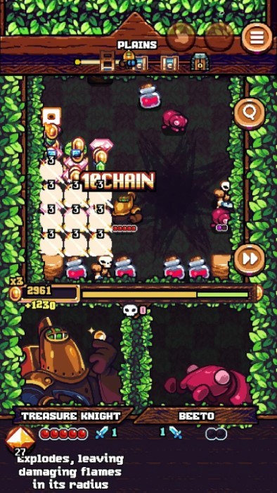 游戏完美融合了消除玩法和地牢冒险两种元素,创造出独特的游戏体验。战斗系统强调策略性,玩家需要根据敌人类型选择合适的消除策略。特殊技能的组合使用可以产生强大的连锁效果,让战斗过程充满变数。
